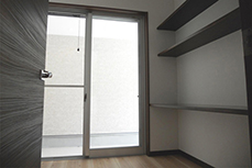 南間口と土地面積が広いこの物件の外観は以前よりすでに構想ができており、いつの日か南向きで大きい土地を分譲する際は「事業計画を実現するぞ!」と心に誓っていた建物でした。分譲住宅とは思えない外観はコスト面もなかなか抑えることができませんでしたが、実現させてしまいました。 (笑)これも大企業ではできないこだわりのある弊社だからこそできたと思っております。建物を大きく魅せるために駐車スペースは外にも有りますがビルトインガレージとすることで建物幅を確保しました。そのガレージに駐車した愛車を眺めて楽しめる様に、玄関と書斎スペースに大きな窓を設け、遊び心は忘れておりません。デザイン面でも廊下に3連ニッチやVert Garden(緑あふれるお庭)の名をイメージさせる壁紙をカラーセレクトしたりとお洒落なお家に仕上げております。