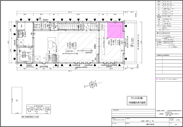 白川台は南ひな壇の丘となっており、2階とスカイテラスからは遠くに明石海峡大橋が望めます。II号地は2階にリビングを配置することで天窓(トップライト)が活用でき、日中は電気を点灯しなくても十分な明るさを確保しております。また、リビングからも遠くに明石海峡大橋を楽しんでいただくことができます。その他家事動線として2階に洗面所を設けており、リビングから階段を上ると、そこには地上4階にも感じる開放的なスカイテラスにて洗濯物を干していただけます。